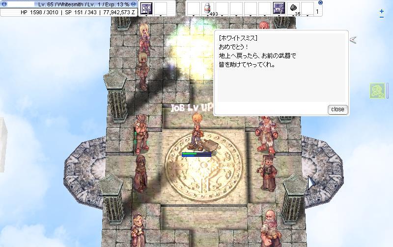 ノービスと商人のJOB37まではプリで手伝ってもらったが、それ以降手伝いはなしでソロだったが、普通に一匹づつ倒してたら転職まで遠すぎると思い立ちOD1でチデリ服を来てカーレボでJOB上げw