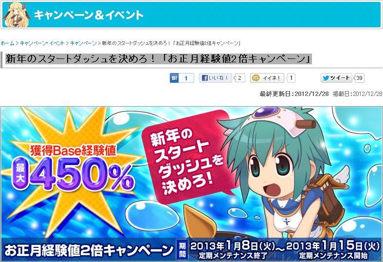 新年のスタートダッシュを決めろ! 「お正月経験値2倍キャンペーン」